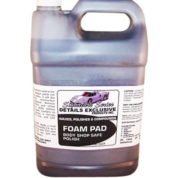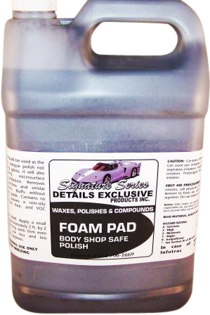Signature Series Foam Pad Polish should be used as a last buffing step. This unique polish not only imparts a dazzling gloss, it will also remove buff swirls, micro surface imperfections and oxidation. Removes 3000 grit sand scratches and similar imperfections. Buffs without gumming or clogging pads. Contains no silicone or waxes. Leaves a non-oily mirror-like finish. Dust free. Body Shop Safe