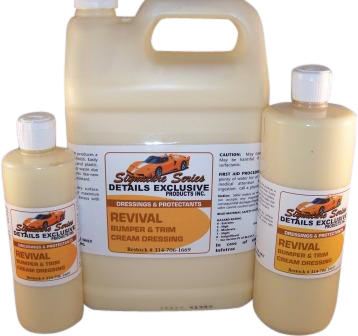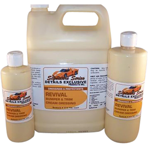 Signature Series RevivalĀ is an advanced cream dressing that produces a high gloss and wash-off resistant finish. Easily applied to trim, bumpers, vinyl and plastic. Long lasting, wash after wash. No waste due to run-off and over-spray. Restores like-new appearance to faded plastic. UV resistant.